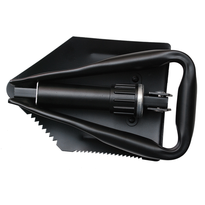Pala plegable resistente, hoja 6″x8″ y mango de 23″. Fácil de doblar para almacenamiento. Perfecta para trabajos pesados y uso en espacios compactos.